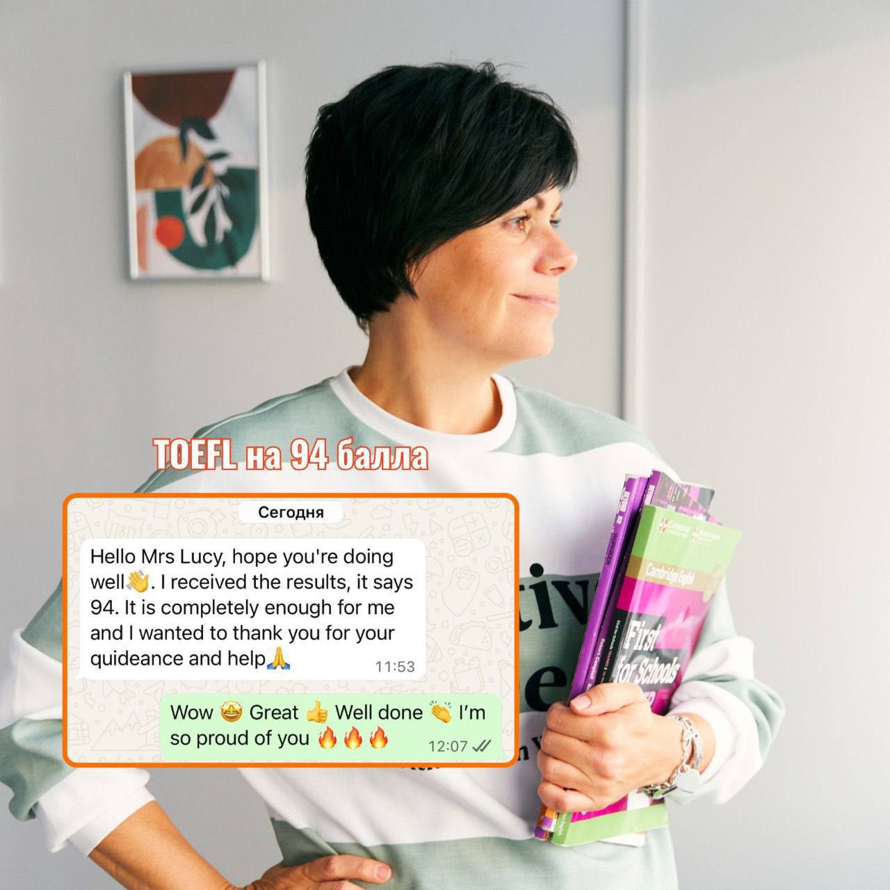 Кстати, на одном из последних уроков я сказала ученице «волшебные слова», которые в корне изменили ее отношение к поведению на экзамене и, как видите, привели к успеху